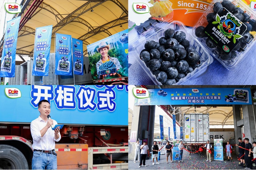 2025年9月9日,都乐公司首柜搭载秘鲁蓝莓新品种FCM14-057的货轮顺利靠泊上海洋山港,该品种首次登陆中国,将为本土消费者带来前所未有的体验。