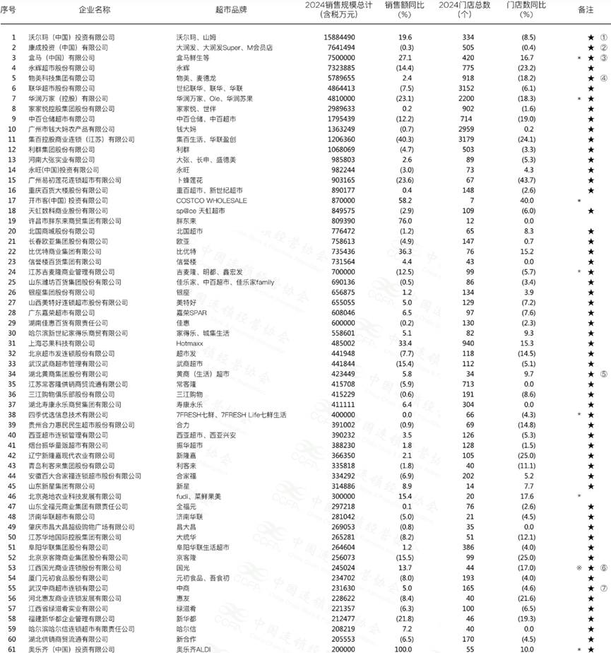 中国连锁经营协会(CCFA)今年7月9日公布的“2024年中国超市Top100”显示,奥乐齐位次从前年的82位攀升至去年的61位。数据分析来看,奥乐齐是榜单上排名提升最快的超市品牌,成为100强中的“黑马”。榜单显示,2024年,奥乐齐中国的销售额为20亿元,相比2023年的水平直接翻倍,是榜单中唯一销售额同比增长100%的超市。虽然它的门店数量增长并不快,去年奥乐齐的门店数量是55个,比2023年新增了5家,同比增长10%。但以此计算,奥乐齐2024年的单店营收规模在3600万元的水平,这在1000平方米的零售店铺来说是较为出色的业绩。