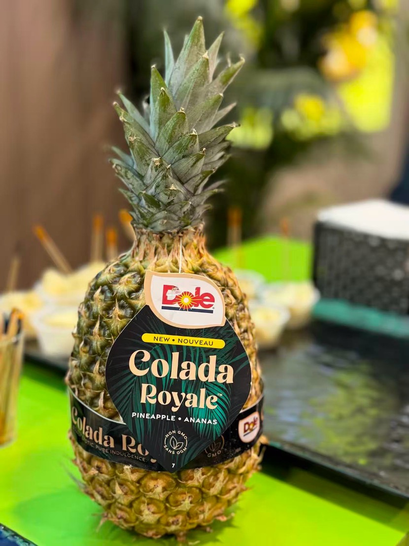 都乐食品公司(Dole)在展会上发布了新品种菠萝Colada Royale,产品定位高端,带有椰香的奶油色果肉十分有特色。公司定制了同款香型的菠萝椰香润唇膏作为赠品,使用完唇齿留香就像刚刚品尝完新款菠萝,令人印象深刻。