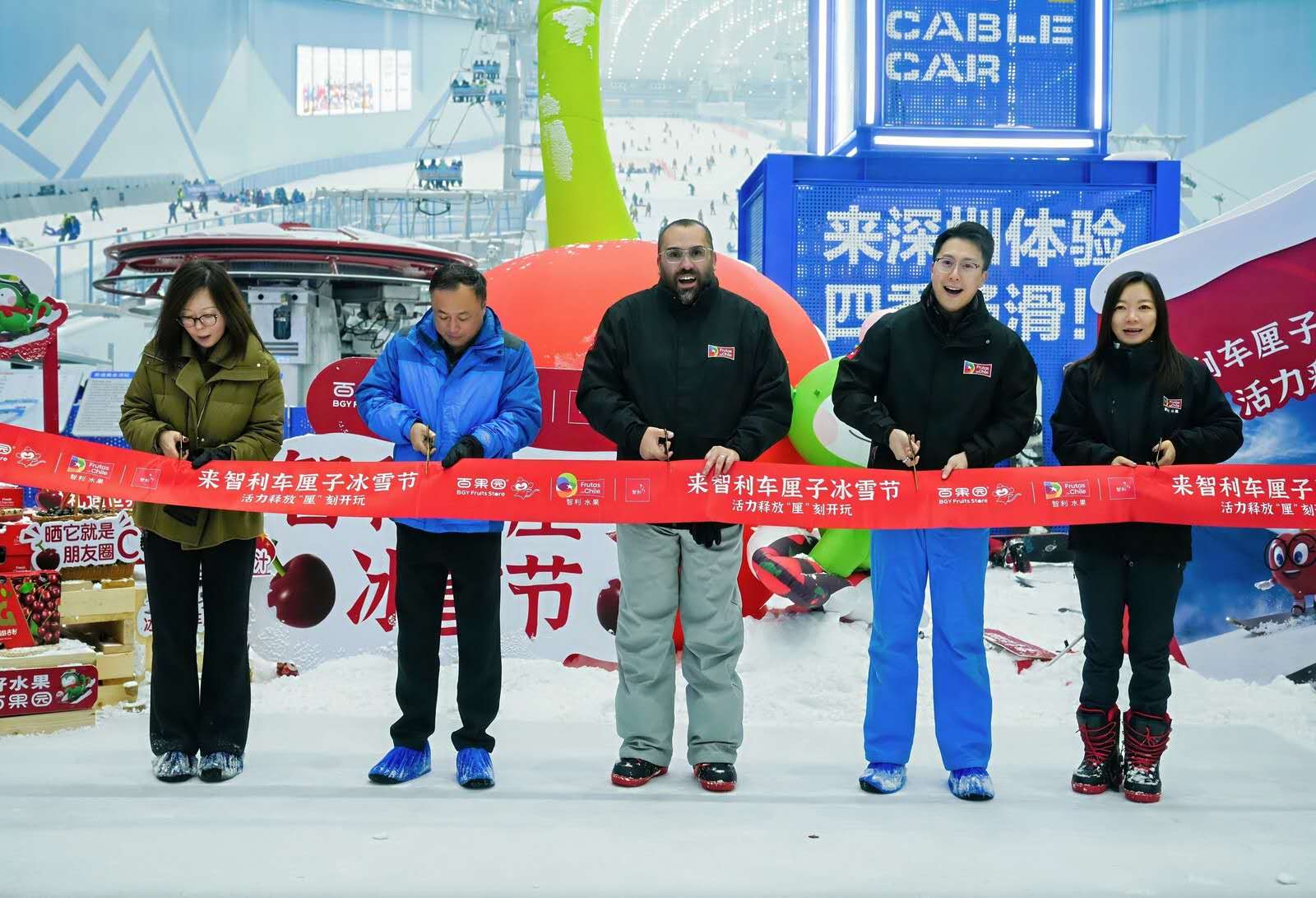 作为深圳站启动活动的一部分,百果园与智利车厘子委员会联合举办的智利车厘子冰雪节还在深圳·华发冰雪热雪奇迹举办了主题快闪活动。该场馆是吉尼斯世界纪录认证的“最大的室内滑雪中心”,现场通过冰雪场景沉浸体验、互动玩法、车厘子试吃及销售等形式,进一步将智利车厘子与冰雪生活方式体验及高端季节性消费相结合。