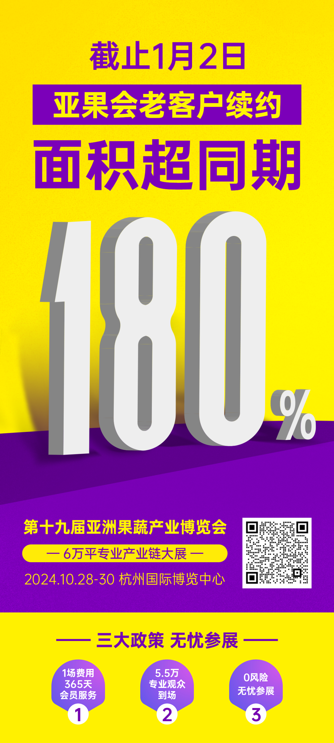 2024年10月28-30日第十九届亚洲果蔬产业博览会即将在杭州国际博览中心盛大开幕。本届博览会由iFresh亚果会携手30余家行业协会、科研院校、批发市场、新零售平台及专业媒体联合主办与协办,展出面积达6万平方米预计将吸引超过1000家展商参展,观众数量有望达到55,000人近500家专业媒体和新媒体大V将集中报道。